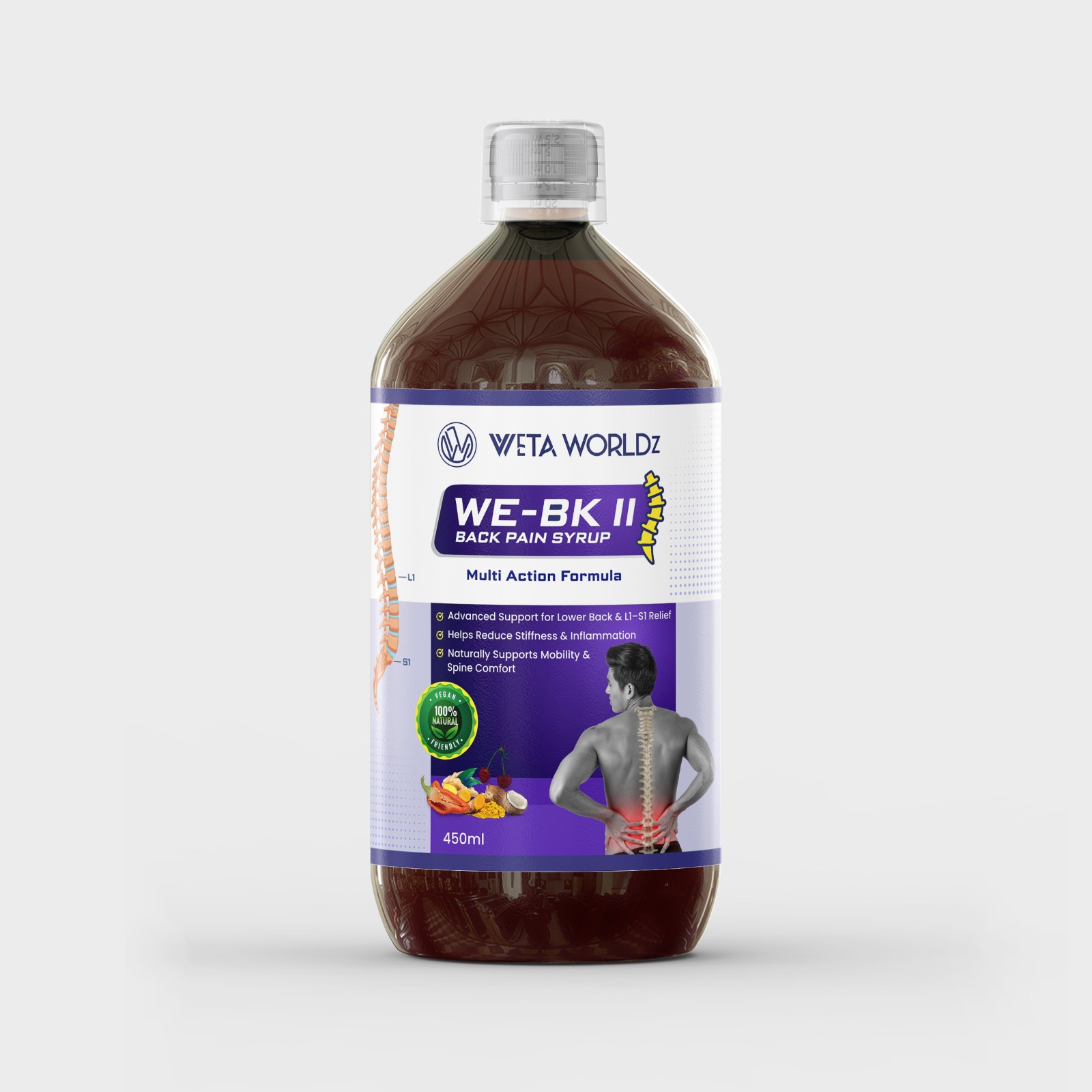 WETA WORLDZ is dedicated to providing affordable and effective health products to make nutrition easy and enjoyable without compromising on quality. Our Werti-Go Syrup is a daily supplement designed by our team of doctors to address the root cause of migraines and headaches, ensuring a permanent solution. ALL YOU NEED: Consume 10ml of Werti-Go Syrup daily, morning and evening, or as prescribed by your healthcare professional to unlock its numerous benefits. JUNK FREE FORMULATION: Our supplements are crafted in an FSSAI approved, WHO-GMP certified facility. They are VEG, SUGAR-free, GMO-free, GLUTEN-free, and SOY-free, providing you with a stress-free choice for your health. NATURAL & EFFECTIVE: Werti-Go Syrup is free from added sugar, artificial taste enhancers, and harmful chemicals. Packed with nutritious herbs, it offers a natural and effective remedy for long-standing illnesses. DOCTOR FORMULATION: Designed with the expertise of our team of doctors, the syrup works at the root cause of migraines and headaches, ensuring a comprehensive and lasting solution to your health issues. HERBAL REMEDY: Our Werti-Go Syrup effectively manages all types of vertigo, including cervical related vertigo, ENT related vertigo etc. With the potential of various potent herbs, this 450ml bottle gradulayy makes you completely free from Vertigo DIRECTIONS: For adults, take 2 teaspoonfuls (10ml) of the syrup twice a day. It is recommended to use the syrup under your physician's supervision to avoid under or overdosing and to ensure effective results. WARNING: Before use, carefully read the label and check the expiry date. Keep the syrup out of children's reach, and do not exceed the recommended dosage. Following these simple precautions ensures a safe and beneficial experience with WETA WORLDZ products.